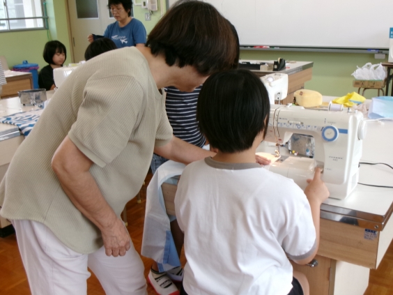 9月16日(火)に、5年生の家庭科の学習で、ミシンボランティアの方に来ていただき、エプロンづくりをしました。