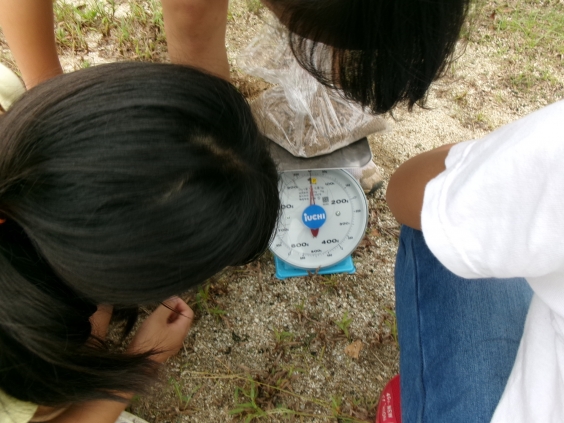 9月18日(木)に、3年生の算数科「重さ」の学習で、1kgを予想して量り取る学習を行いました。