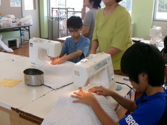 9月19日(金)に、6年生の家庭科の学習で、ナップザックづくりをしました。