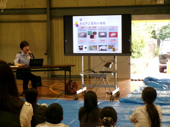 10月2日(木)に、学校保健委員会で「薬物乱用防止」について、長崎税関三池税関支署と長崎税関監視部麻薬探知犬管理センターの方から話がありました。5、6年生の児童、保護者の方を対象に行いました。
