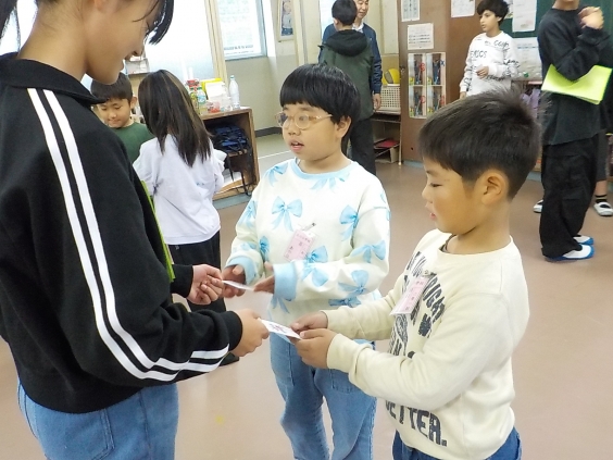 短い時間でしたが、児童主体で聴き合い、対話的で深い学びに近づくことができました。最後に、6年生は2年生にご褒美カードを渡して、子供たちはお互い笑顔になりました。