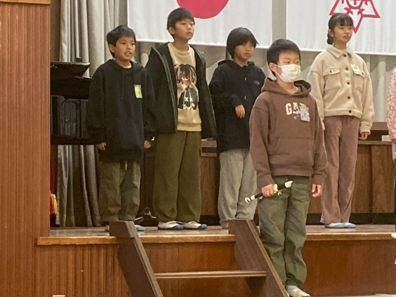 12月4日(木)の2時間目と3時間目に、創立140周年記念式典と学習発表会のリハーサルを行いました。記念式典については、全体の流れを理解して、儀式にふさわしい態度で頑張ることができました。全校合唱も少しずつ上達しています。学習発表会については、歌・リコーダーの演奏・合奏・クイズ・英会話など、盛りだくさんの内容になっています。どのような発表になるか、楽しみにされてください。