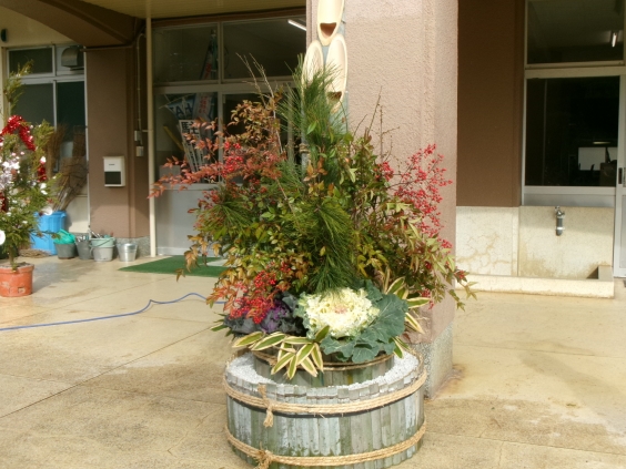 12月16日(火)に玉川校区まちづくり協議会と勝立地区公民館の皆様から立派な門松を作っていただきました。児童昇降口に飾っています。