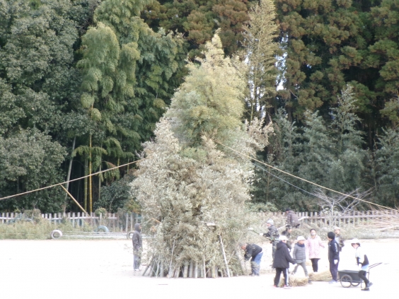1月22日(木)の午後から、25日(日)に行われるどんど祭の子供山づくりをしました。