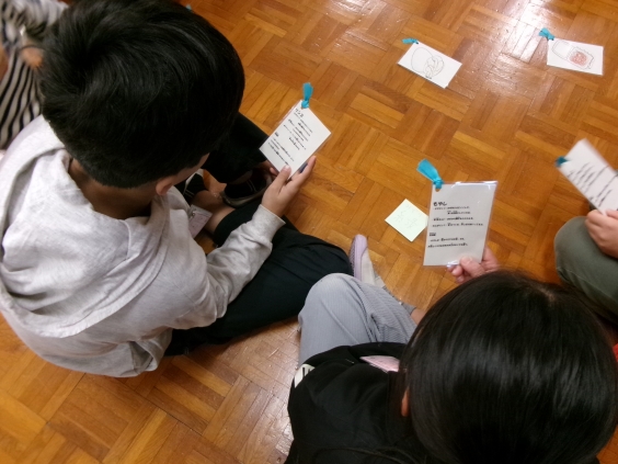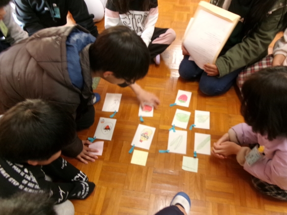 給食週間にちなんで、保健・給食委員会の皆さんから、「三色食品群」について話がありました。バランスよく食べることが大切だと分かりました。その後、縦割りグループに分かれて、様々な食材が描かれたカードを3つのグループに分ける活動を行いました。そして、カードの裏に書かれてある豆知識を発表し合うことで、食材の栄養や生育場所などについて深く知ることができました。最後に、普段お世話になっている栄養士の先生や調理員さんに感謝の手紙を渡して、感謝の気持ちを伝えました。