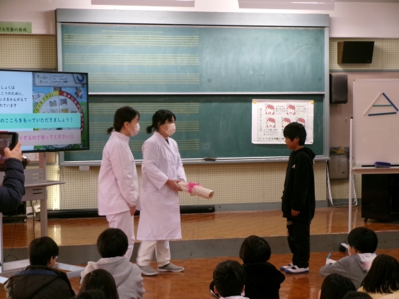 1月29日(木)の朝の時間に、音楽室で給食集会がありました。