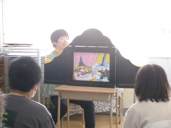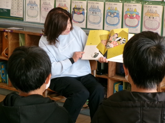 今回の読み聞かせは、3月3日の節分にちなんだ話や、春を連想させるような話など、今の季節に関する本を中心に読んでいただきました。また、紙芝居を大迫力で読んでいただいた学年もあり、子供たちは、目を輝かせて聞き入っていました。今日の読み聞かせも、子供たちにとって、充実した時間になりました。
