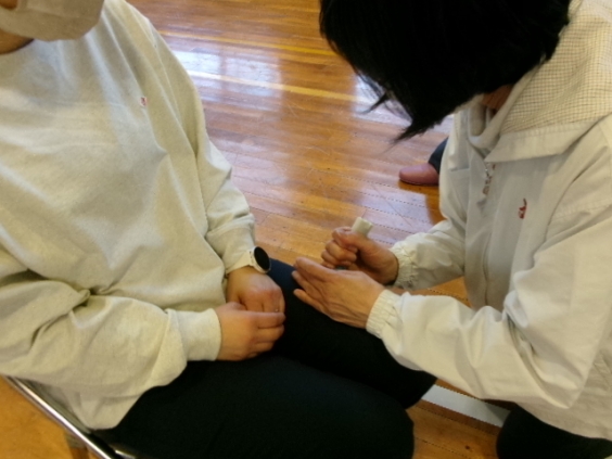 大牟田市消防本部の皆様を講師に招いて,救急車が到着するまでに行う一次救命処置について職員が研修しました。 窒息時の対応,そして心配停止などの緊急事態でのAED(自動体外式除細動器)の使い方,さらには胸骨圧迫方法について熱心に教わりました。 職員は「毎年のこの研修で気が引き締まります」「児童が安全に学校生活を送れるようにするために,『かもしれない』という考えを忘れないで指導していく」と感想をもっていました。