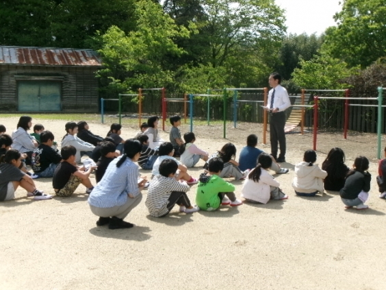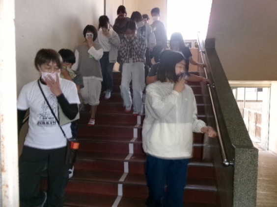 本年度1回目の避難訓練は,地震と火災を想定して実施しました。今回の目的は避難経路の確認と安全かつ迅速な避難方法の理解です。 地震発生時における頭と体を守るための動きや運動場への避難を,玉川っ子全員が真剣に取り組みました。
