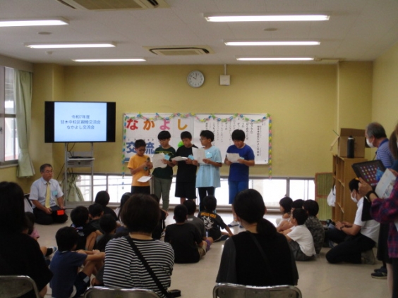 17日(水)、特別支援学級の子供たちによる「甘木中校区なかよし交流会」を行いました。交流会には、甘木中校区の倉永小学校と両校の保護者の皆様を手鎌小学校に招き、交流を行いました。交流では、自己紹介を行ったり、ゲームを行ったりして楽しく過ごすことができました。他校と交流する貴重な体験となりました。