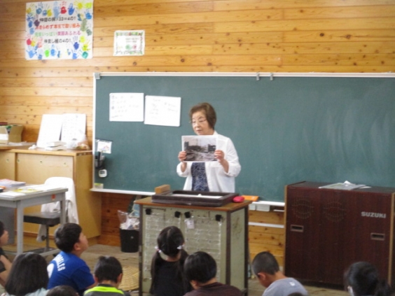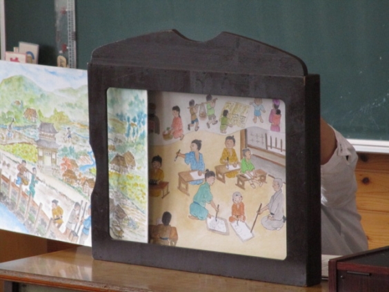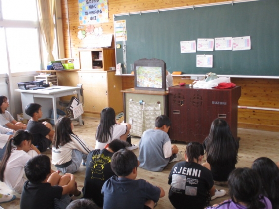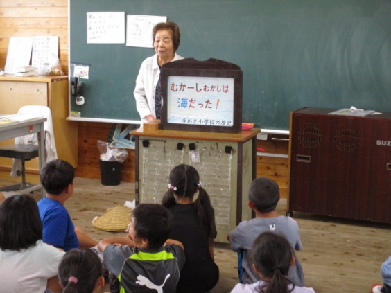 9月22日(月)、4年生の総合的な学習において、「手鎌歴史と里山の会」の柿原様をお招きし、干拓絵本紙芝居を行っていただきました。 4年生は、このお話から手鎌小学校や校区の歴史を学び、干拓のことや戦争で大きな被害が出たことなどを知りました。今後は、地域の歴史を大切に守っていく思いを育て、「潟いねおどり」へと学びをつなげていきます。