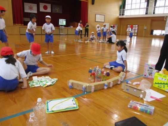 2年生は、生活科「うごくうごくわたしのおもちゃ」の学習で、おもちゃランドを開くことを計画しています。まずは、自分たちのクラスの中でおもちゃランドを開き、その後、1年生を招待して楽しんでもらう計画です。みんなが楽しめるおもちゃの工夫を、アイディアを出し合いながら考えています。