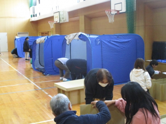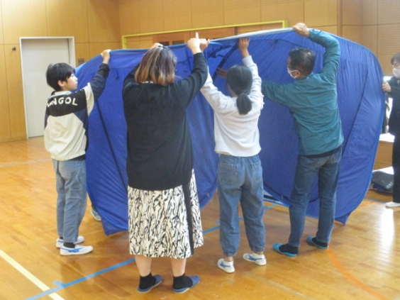 10月4日(火)、避難訓練を実施しました。今回は、地震の後に津波が発生したことを想定し、避難経路を確認しました。避難訓練にあたっては、大牟田市防災危機管理室の方に命を守るための行動について講話をいただきました。また、避難訓練後に、5年生、地域の皆様、市P連家庭教育委員の皆様を対象に、防災危機管理室の方から「避難所設営体験」を行っていただきました。手鎌地区の災害の起こりやすい場所や、災害の種類などについてクイズで教えていただいたり、実際に避難した時に、どのようにテントやベッドを準備するとよいのかを学んだりすることができました。