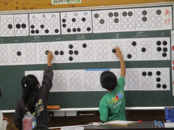 3年生は、総合的な学習の時間に「共に生きる温かい街を目指して(福祉)」の学習で、点字の学習を行っています。今日は、「むつき会」の皆様を招き、点字教室を開催しました。点字の読み方や作り方を学習し、少しでも目が不自由な方の気持ちをわかろうと、学習に取り組んでいました。