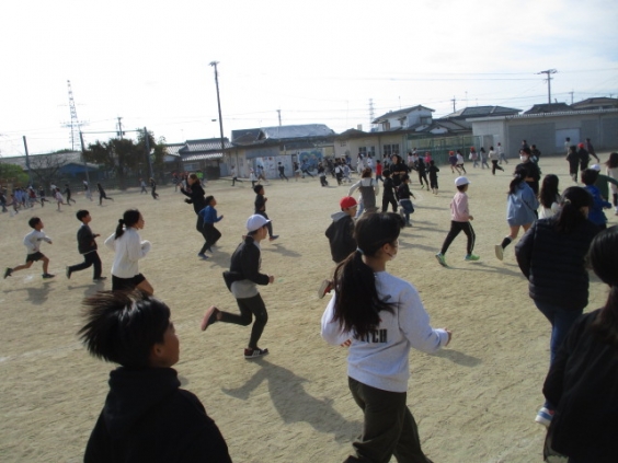 今日の朝は、体力アップタイムでした。また、持久走大会に向けて、17日(月)から業間走をスタートしました。急に寒くなり、体調も心配されますが、元気な体づくりのための取り組みをがんばっています。