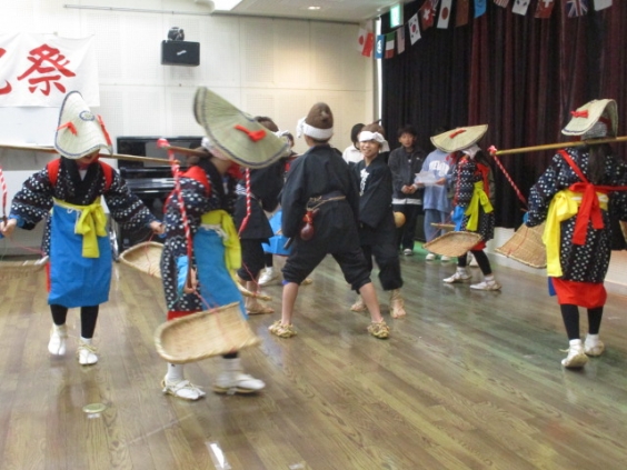 11月29日(土)、手鎌地区公民館の「ふれあい文化祭」が行われ、4年生が「がたいね踊り」を披露しました。「がたいね踊り」は、黒崎干拓工事の時に、働いていた人々が労働のつらさを軽くしようと歌いながら元気を出していたことが始まりと聞いています。4年生の子供たちは、歌と振付を一生懸命覚え、踊りを披露しました。たくさんの拍手をもらい、子供たちはとても嬉しそうでした。