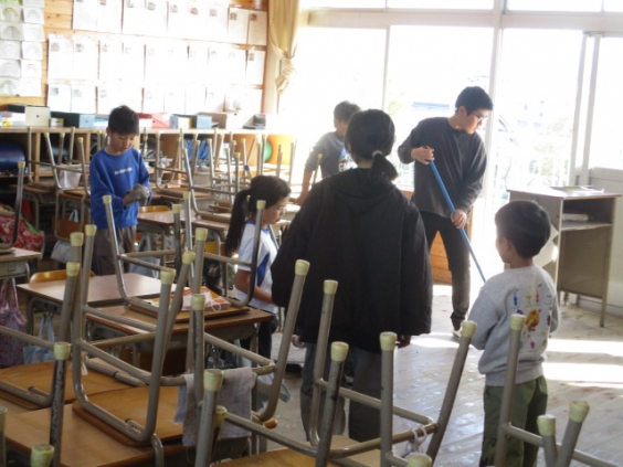 今日は、縦割り掃除に取り組みました。1年生から6年生までをグループに分け、掃除を行いました。6年生がリーダーとなり、一生懸命掃除に取り組むことができました。