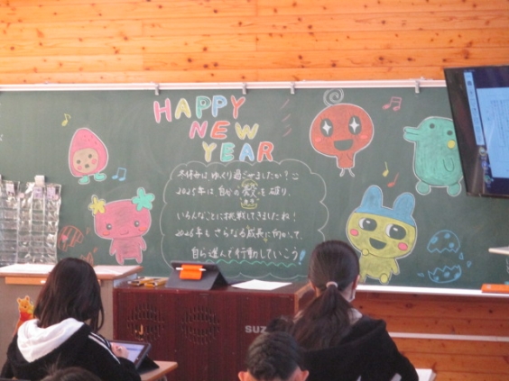 今日から後期後半がスタートしました。今年もよろしくお願いします。 今日も、朝、見守り隊の皆様に通学路の安全を見守っていただきました。ありがとうございます。新しいスタートですので、オンラインで全校集会を行いました。学級では、冬休みの思い出を語ったり宿題の確認をしたりしました。早速、係活動や当番活動を決めている学級もありました。