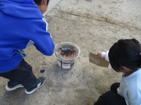 3年生の総合の学習「昔のくらしたんけん隊」で、昔の道具である七輪を使い方を学習し、昔の人々の苦労や知恵、工夫について学びました。