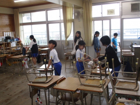 身の回りを整え、教室、学校をきれいにすることは、子供たちが安心して学校生活を送るために欠かせないことです。そこで、昨年まで週2回だった掃除時間を、今年は週4回に増やしました。美しく整った環境で、集中して学習に取り組んでほしいと思っています。6月からは、縦割り掃除も計画しています。まずは、掃除の手順や道具の使い方を、各学級でしっかりと指導をしています。