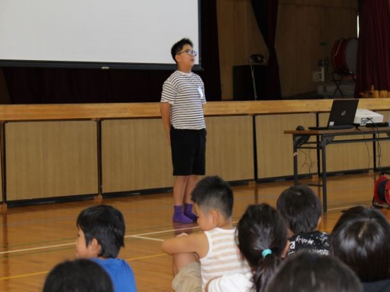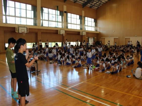 校長先生からは、後期にある行事の紹介と頑張ってほしいことを話しました。特に重点目標である「指示を待つのではなく、自分たちで進んで考えて行動すること」について話しました。
