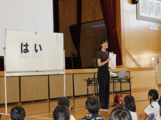 その後に、10月の生活目標である「明るく元気な返事をしよう」について話がありました。学年ごとに返事の練習をしました。