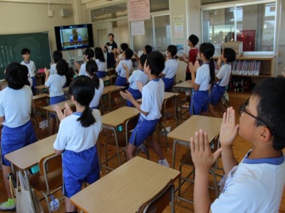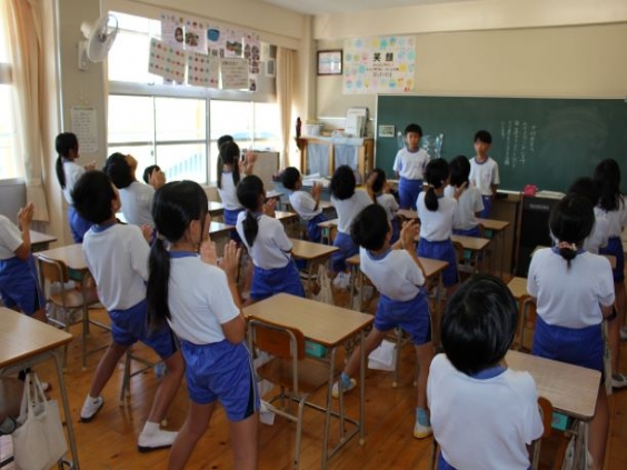 運動会に向けていろいろな練習が行われています。 今朝は、応援団員が各教室に出向いて応援の仕方について説明していました。 振付けや声を出すタイミングなど、動画を使いながら分かりやすく説明していました。 写真は元気に応援練習をしている4年生です。 体を後ろにそらして、大きな声を出して応援していました。 とても気合が入ったすばらしい応援になっていました。 運動会当日も、元気のいい声と態度で頑張ってくれると思います。