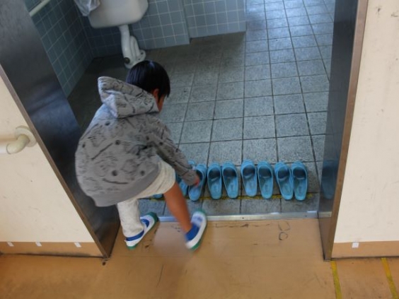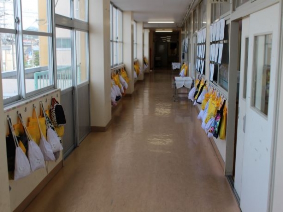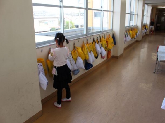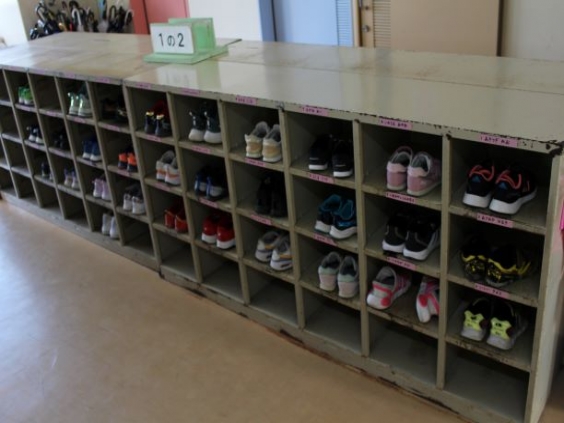 これは、1年生の廊下の様子です。 給食エプロンや黄色バックなどがきれいに整理されています。 一人一人が自分の持ち物を責任をもって管理しているからだと感じました。 何らかの原因で給食エプロンなどが下の落ちても、気づいた人が元の場所に戻してくれていました。 トイレのスリッパも並んでいない時は、次の人がはきやすいようにと誰かがきれいに並べてくれます。 靴箱も毎日このようにきれいに並べられています。 学校をいつもきれいにしてくれている素敵な一年生です。