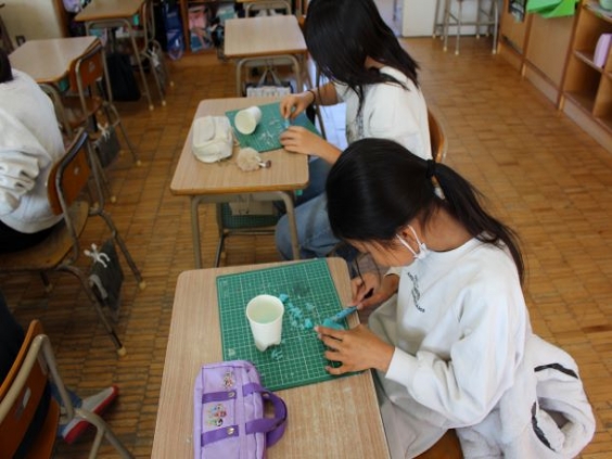 各クラブの活動の様子を紹介します。 音楽クラブは、琴で「さくら」の曲を練習していました。みんな集中していてきれいな音色を出すことができていました。 調理・手芸クラブは、パンケーキをフライパンで焼いていました。甘い、いい香りが家庭科室に漂っていました。 アートクラブは、宝石せっけんを作っていました。いろいろな形にせっけんを削っていました。
