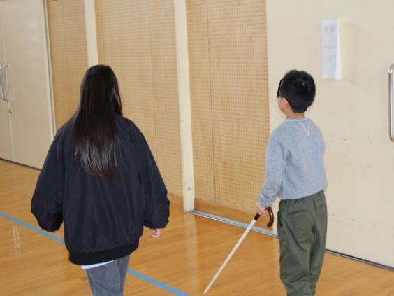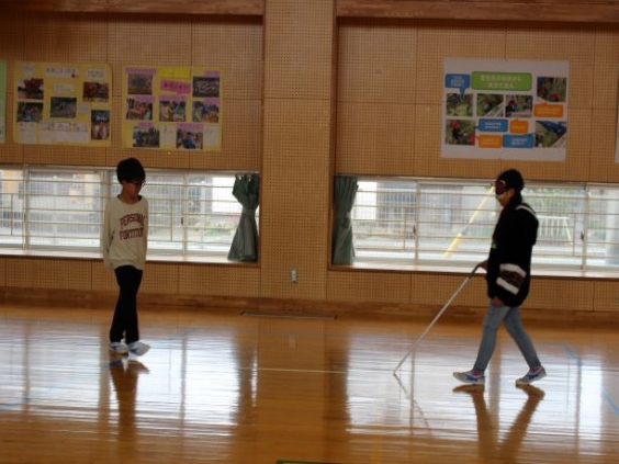 3年生は、総合的な学習の時間の「手と心でつながろう」の学習でアイマスク体験をしました。 アイマスクをした瞬間に「こわい」「どきどきする」という声があがり、歩くのもゆっくりとしか進めませんでした。 となりにいる友達からの声を頼りに恐る恐る移動していました。 今日の貴重な体験を日常の生活に生かしてほしいと思います。