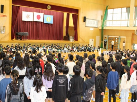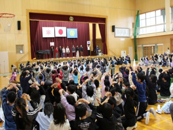 歓迎遠足や登校班、掃除、クラブ活動、委員会活動でお世話になったことを劇などをしながら大きな声で発表しました。