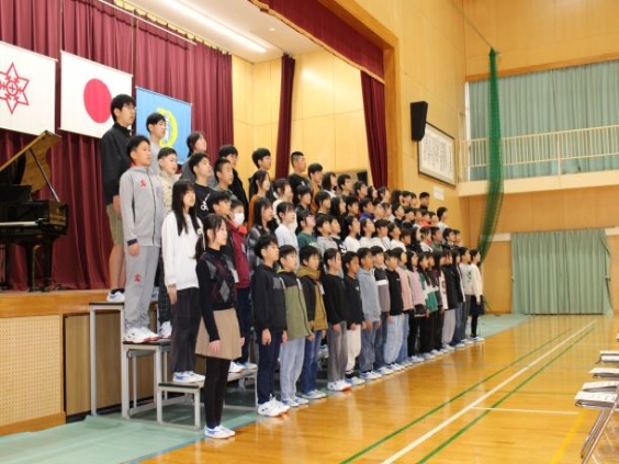 明日の卒業式に向けて、最後の練習を本番さながらに行いました。 6年生の凛々しい態度で卒業証書を受け取る姿や精一杯別れの言葉を言う姿はとても立派でした。 また、心を一つにして一生懸命に歌う姿には感動しました。 5年生も6年生を気持ちよく送り出そうと必死に頑張っていることが分かりました。 明日は、家族への感謝の気持ちが伝わる素敵な卒業式になることを願っています。