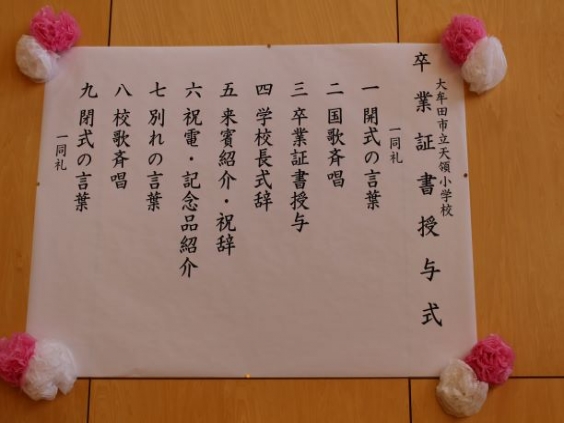 卒業生一人一人が堂々と卒業証書を受け取り、天領小学校を巣立っていきました。