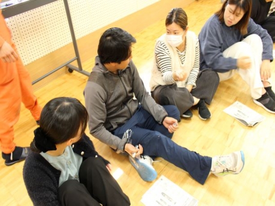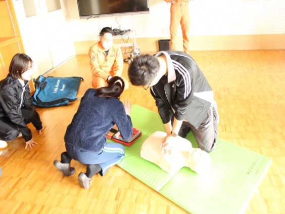 胸骨圧迫、AEDの使い方については、実際に目の前で人が倒れたという設定で、職員で協力しながら実践しました。