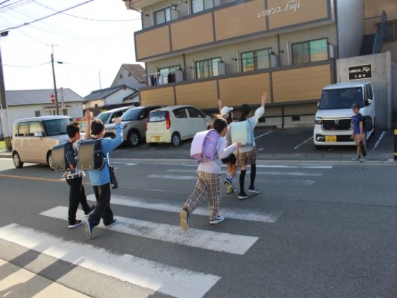 6校時まで一生懸命に学習をがんばった子供たちは、友達と一緒ににこやかに下校していました。 横断歩道では、左右を見て安全を確認してから、手を挙げて渡っていました。 信号を守らない子供や横断歩道ではないところを渡る子供は一人もいませんでした。 交通ルールを守って安全に登下校していることを全校朝会等で称賛しようと思います。 5月12日(火)には、交通安全教室を開催します。