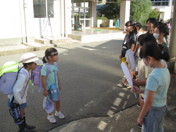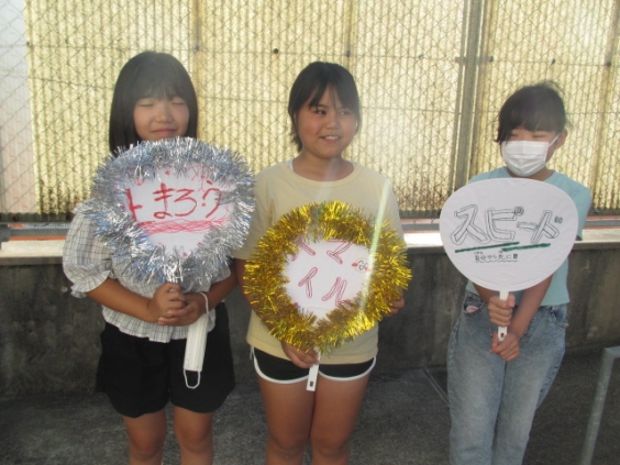 今朝は企画委員会が挨拶運動を行いました。 吉野小では、3S「スマイル、スピード、ストップ」を合言葉に挨拶を頑張っています。 企画委員会が推しうちわで3Sを作成し、みんなに呼びかけています。 吉野小の子どもたちは、地域の方からも「挨拶、上手です。」とよく褒められます。 よくがんばっています。