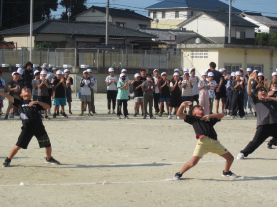今日は、朝から運動場で応援合戦の練習を行いました。 応援団は、昼休みも練習を行い、応援歌や演技を作ったりしています。 全校児童も応援歌を覚え、移動したり演技をしたりして頑張っています。 運動会まであと4日。秋晴れのもと、子どもたちが練習した成果を保護者の皆様や地域の皆様にみてもらうのを楽しみにしています。