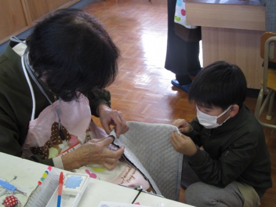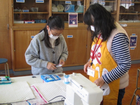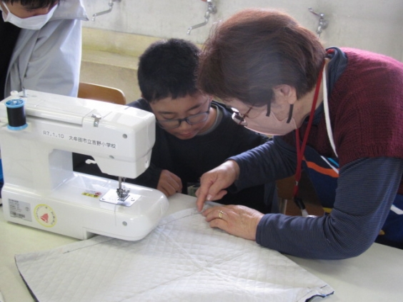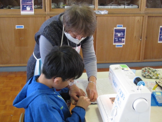 今日は、5年生がナップサックづくりでミシンにチャレンジしました。 ミシンの練習はしていますが、実際にナップサックを縫うのは初めてです。 そこで、毎年お世話になっている「布れ愛工房」(ミシンボランティア)さんに来ていただき、お手伝いをしてもらいました。 一人ひとり丁寧に教えてもらいながら、ナップサックを完成させることができました。 ありがとうございました。 子どもたちも出来上がったナップサックを見て、満足そうでした。