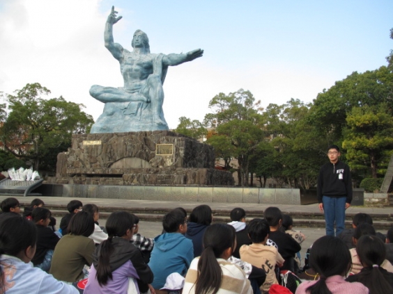 6年生が、12月1日、2日に修学旅行に行ってきました。 1日は、長崎の「さるくガイド」さんと一緒に原爆落下中心地や平和公園などをみて回ったり、語り部さんの話を聞いたりして、平和について考える学習を行いました。 2日は、グラバー園や眼鏡橋、出島などを見て回り、長崎の歴史と異国情緒を味わってきました。 宿泊は、アイランド長崎に行き、広い部屋とふかふかのベッドに驚き、夕食はバイキングでおなか一杯食べ、広いお風呂に入って、修学旅行の夜を十分に楽しんでいたようです。 楽しい思い出ができたと思います。