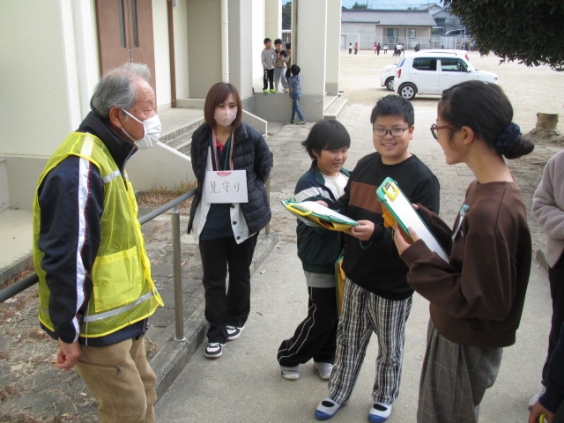 これまで6年生は、認知症について学習を進めてきています。今日は、認知症の方に出会ったときに、どのように声掛けすればよいかを訓練してみました。