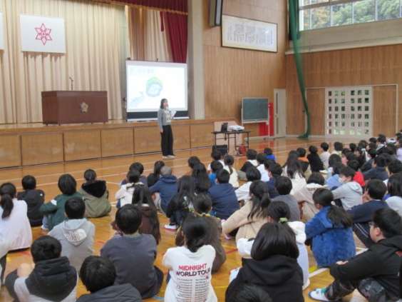 朝の時間に、校長先生の話と生徒指導部から冬休みのくらしについての話がありました。
