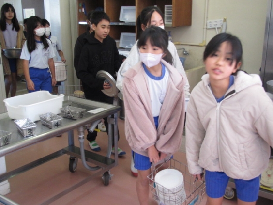 1月は給食週間です。 給食調理員さんへのお礼の手紙や給食委員会による児童集会、給食試食会等があります。 今日の給食献立は、キーマカレーとフルーツ合わせでした。 残食調べも毎週行っていますが、今日は残食がすごく少なかったです。 片付けも給食委員会さんが率先してしてくれます。 子どもたちも「おいしかったです!」「また作ってください。」と言いながら、 給食室を後にしていきます。 たくさん食べて、大きくなってほしいです。