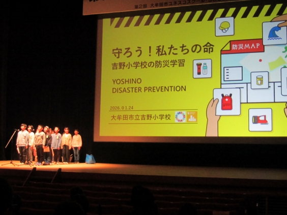 その中の「大牟田市ユネスコスクール・SDGs/ESD子どもサミット」で、本校の5年生が総合的な学習の時間に取り組んだ防災学習について発表しました。