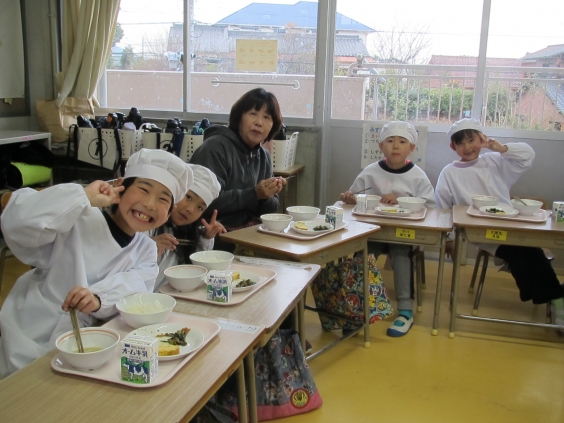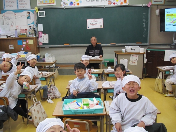 子どもたちは、給食時間にお客様が来られるということで大喜び!いつもと違う楽しい時間を過ごしたようです。