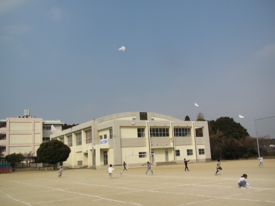 1年生が生活科の学習で凧あげをしました。 凧に好きな絵をかいて、自分だけの凧を作りました。 初めて凧あげをする子も多く、どうなるか心配しましたが、思ったより高く凧があがり ビックリしました。 空高く見上げるほど凧があがり、久しぶりに立派な凧あげを見ました。 楽しい凧あげとなりました。